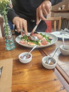 Eu e minha namorada viemos almoçar no restaurante 9Due8. O restaurante estava cheio, mas conseguimos uma mesa sem fazer reserva para o almoço.