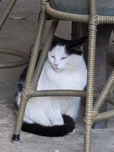 A decoração é alegre, com bela iluminação, com móveis rústicos e de colecionadores.