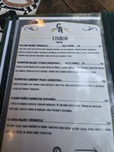Solicitamos dadinho de tapioca com geleia de pimenta, batata rústica e a costelinha barbecue e acompanhamos primeiro com um vinho branco argentino de Salta Torrontes e Riesling Amalaya da bodega Colomé e o segundo vinho foi um Rosé de Grenache, Cinsault e Syrah, um vinho Sud de La France Claude Val da Paul Mas Francês do Langhedoc, ambos muito bons.