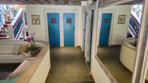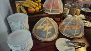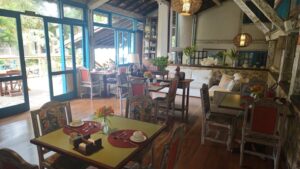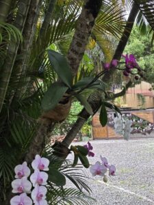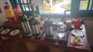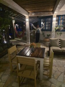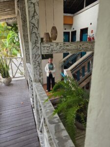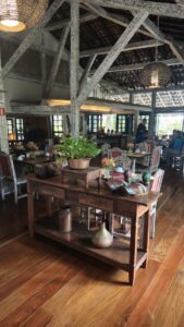 Os espaços são muito bem decorados, desde a recepção, o hall de entrada, sala de refeições, bar, piscina, jardins, sala de jogos, espaço para crianças, corredores e nosso quarto com uso de muita madeira, flores aonde predominaram as orquídeas, com móveis rústicos, livros antigos, pinturas e cores bem alegres. Ficamos na suíte no segundo andar, embora a vista era para outras casas e a rua, ela era bem decorada e com varanda refrescante no calor. Gostamos muito…