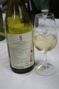 Vinho de cor amarelo palha, com reflexos dourados bem brilhantes, finas lágrimas. Aroma de média intensidade de limão Galego, abacaxi, limonada, laranjada, lichia, pera, maçã verde, flor de jasmim, algo mineral com sal, giz de cera, grafite, com persistência média. Na boca um vinho ligeiramente ácido e doce, muito refrescante, algo salgado, encorpado, feminino, com maravilhosa acidez, álcool bem integrado e um longo final de abacaxi, limão Galego, limonada, maçã verde. Foi muito bem com o Frango Atropelado no jantar da reunião da Confraria SOEDBB na reunião sobre Sauvignon Blanc.