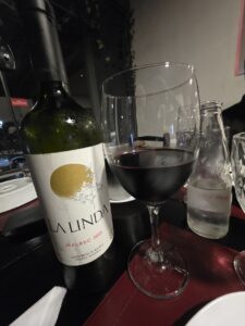 Vinho de cor rubi intenso impenetrável, com reflexos grenás bem brilhantes, com longas e lentas pernas. Aroma de média intensidade de cereja, amora, ameixa preta, menta, café, chocolate amargo, com persistência média. Na boca um vinho encorpado, seco, com álcool bem integrado, taninos femininos, doces, domados, num longo final de cereja, amora, ameixa preta, pimenta malagueta, chocolate amargo e café. Acompanhou bem o bolinho de bacalhau e a batata frita com bacon no restaurante DiLucca. Melhorou com a companhia dos amigos pescadores e esposas.