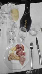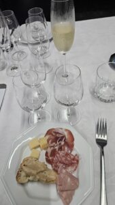 Vinho espumante de cor amarelo palha, com reflexos dourados e finas borbulhas, bem persistentes. Aroma de média intensidade de limonada, laranja lima, Lima da Pérsia, maçã verde, abacaxi, pão de ló, com persistência média. Na boca uma bela acidez, um vinho refrescante e agradável. Com corpo médio e um longo final de fruta com limonada, laranja lima, maçã verde. Acompanhou bem a entrada antepasto de patê de tâmaras divino que o Fernando preparou, pão italiano, frios e queijos na reunião da Confraria SOEDBB sobre vinhos Laranja.