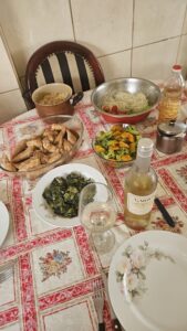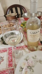 Vinho de cor amarelo palha bem intenso, com reflexos dourados, bem brilhantes, finas e lentas lágrimas. Aroma bem intenso com ataque inicial cítrico de toranja, limonada, Limão Siciliano, laranja Lima, laranjada, seguido de maçã verde, maracujá, pedra molhada, sal, com persistência média. Na boca um vinho bem agradável, com bela acidez, refrescante. Com corpo médio,  álcool bem integrado, final ligeiramente salgado, mineral, mas bem frutado, com limonada, laranjada, maracujá, maçã verde, bem persistente. Acompanhou muito bem a salada de rúcula, broto de feijão, tomate cereja e depois o filé de frango grelhado com cebola e alho picado acompanhado de almeirão cozido, brócolis, abóbora e o arroz integral que a Cissa fez no almoço na casa dela… Gostei, bela relação custo x benefício. A presença da Cissa e do Dudu, melhoraram muito este belo vinho.