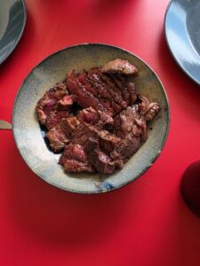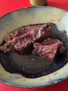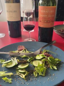 Vinho de cor rubi intenso, impenetrável, com reflexos violetas bem brilhantes, finas e lentas lágrimas. Aroma de média intensidade de grama molhada, ameixa preta, groselha, amora, cereja, framboesa, alcaçuz, chocolate amargo, café, pimenta rosa, com persistência média. Na boca um vinho de corpo médio, com bela acidez, álcool bem integrado. Equilibrado, com taninos femininos, já domados, com longo final de ameixa preta, cereja, amora, chocolate e café. Foi o vinho base com que reduzi o bife de chorizo de Angus e o corte Cowboy steak, um novo corte de acém ou ponta de peito de Wagyu que cozinhei para a linda Cissa. Acompanhou bem a salada de folhas, pepino e mozzarella de búfala, mas perdeu feio para o Bramare. A companhia da Cissa melhorou muito este bom vinho…