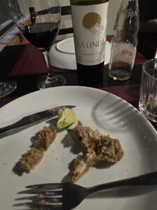 Vinho de cor violeta intensa impenetrável, com reflexos grenás bem brilhantes, com longas e lentas pernas. Aroma de média intensidade de amora, cereja, ameixa preta, groselha, framboesa, menta, pimenta rosa, alcaçuz, violetas, café, chocolate amargo, com bela riqueza de detalhes, mas persistência média. Na boca um vinho encorpado, seco, com álcool bem integrado, taninos femininos, doces, já domados, em um longo final de amora, cereja, ameixa preta, framboesa, chocolate amargo e café. Acompanhou bem o bolinho de bacalhau e de boteco com carne e queijo derretido, além da pizza de quatro queijos e de escarola com calabresa no restaurante DiLucca. Melhorou com a companhia dos amigos pescadores e esposas.
