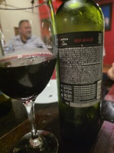Vinho de cor rubi, com leve reflexo violeta, finas e lentas lágrimas. Aroma de média intensidade de amora, cereja, ameixa preta, morango, café, chocolate amargo, pimenta rosa, alcaçuz, final mineral, com pedra molhada, mas persistência média. Um vinho encorpado, agradável, equilibrado, com bela acidez. Os taninos são másculos, mas já domados, com álcool imperceptível e um longo final de boca, com amora, ameixa preta, cereja, framboesa e café. Boa relação custo x benefício, também foi bem com as entradas de provolone, azeitonas verdes, mini pastéis de queijo e carne e as pizzas de presunto Parma com palmito e escarola com bacon e também com o Polpetone recheado ao molho sugo do restaurante DiLucca. Melhorou ainda mais com a companhia dos amigos pescadores e esposas.