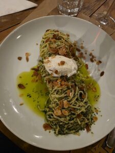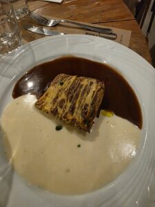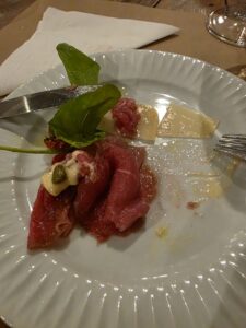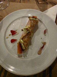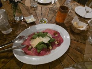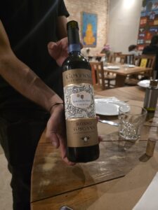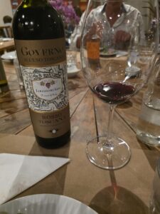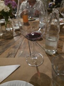 Vinho de cor rubi médio, com reflexos violetas bem brilhantes, finas e lentas lágrimas. Aroma de média intensidade de cereja, framboesa, morango, ameixa, amora, groselha, favas de baunilha, chocolate ao leite, café, alcaçuz, uma pimenta preta bem marcante, couro molhado, cogumelos, com persistência média. Na boca um vinho de corpo médio, delicado, ligeiramente doce, com bela acidez, álcool bem integrado, imperceptível. Um vinho diferente interessante, com taninos femininos, domados, doces e um longo final bem persistente de pimenta preta, café, chocolate amargo, cereja, framboesa, amora, ameixa e groselha. Acompanhou bem o Carpaccio de Manzo, um corte de Wagyu com rúculas, lascas de parmesão e tomatinhos confitados e melhor ainda com o Tagliolini ao pesto e Straciatella e a lasanha de cordeiro. A companhia do Jorge, Lucia e da linda Cissa melhorou ainda mais este bom vinho.